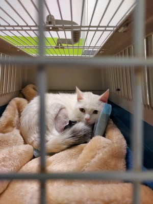 Yoshi (Geschichte siehe unten) ist nach seiner Operation zur Erholung bei uns in einem Pflegezimmer.