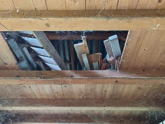 Als wir eintrafen, sass es total verängstigt zuoberst auf dem Dachbalken.