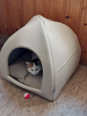 Mein Name ist Yoshi. Im Januar 2019 lief ich einem Bauernhof zu. Im März 2019 brachte mich meine «Finderin», die Enkelin meinen jetzigen Besitzern, zum Tierarzt da ich einen riesigen Abszess auf dem Rücken hatte. Dieser wurde operativ entfernt. Kurze Zeit später hatte ich starke Schmerzen beim Urinieren. Es wurden Kristalle/Steine festgestellt und ich wurde wieder operiert. Seither bin ich auf Diätfutter angewiesen. Danach konnte ich endlich in mein wohlverdientes neues Paradis ziehen – ganz in der Nähe, wo ich gefunden wurde. Ich wohne auf dem Land. Um mein Zuhause herum befinden sich viele Felder, es gibt einen grossen Wald und es ist eine sehr verkehrsarme Gegend.