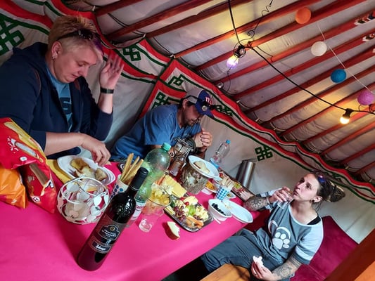 Und jetzt schaut Euch das an...... Das Futter (oder das Auto? 🙃) wirkt total anziehend auf Bella, Milo, Fli und Flo 😂