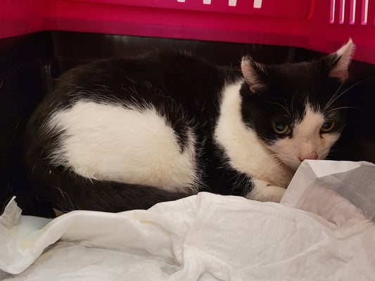 Die Katze hat Jahrgang 2017 und ist weder getestet, geimpft, gechippt noch kastriert.