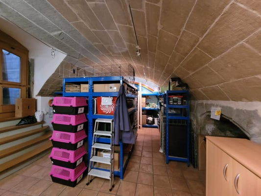 Endlich ist die Ware im Estrich sortiert und weggeräumt, das Lager im Gewölbekeller mit Top-System eingeräumt, alle Transportboxen und Fallen gereinigt und das Aussengehege quasi fertig