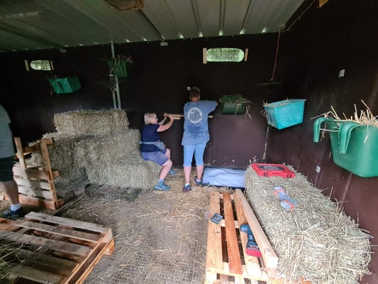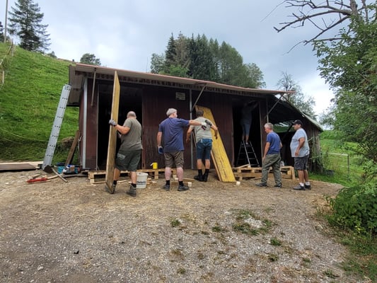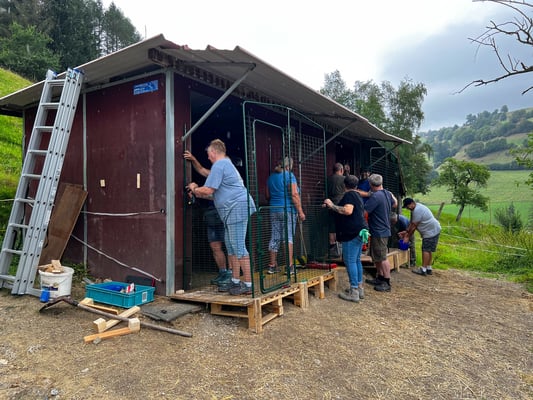 Beim Gehege-Aufbau entstand spontan ein Wettbewerb zwischen der Frauen- und Männergruppe.