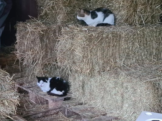 Die Katzen finden dort jetzt ganz viele Betten, Strohballen, Versteckmöglichkeiten etc.