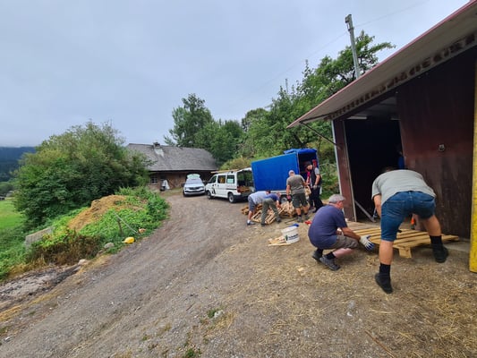 Das Wetter hat sehr lange gut mitgespielt 🙏 So konnte sogar noch ein Auto und ein Bus voller Material gezügelt werden. (Das Hochfahren an den neuen Ort wäre bei nasser Naturstrasse schwierig geworden 😟)