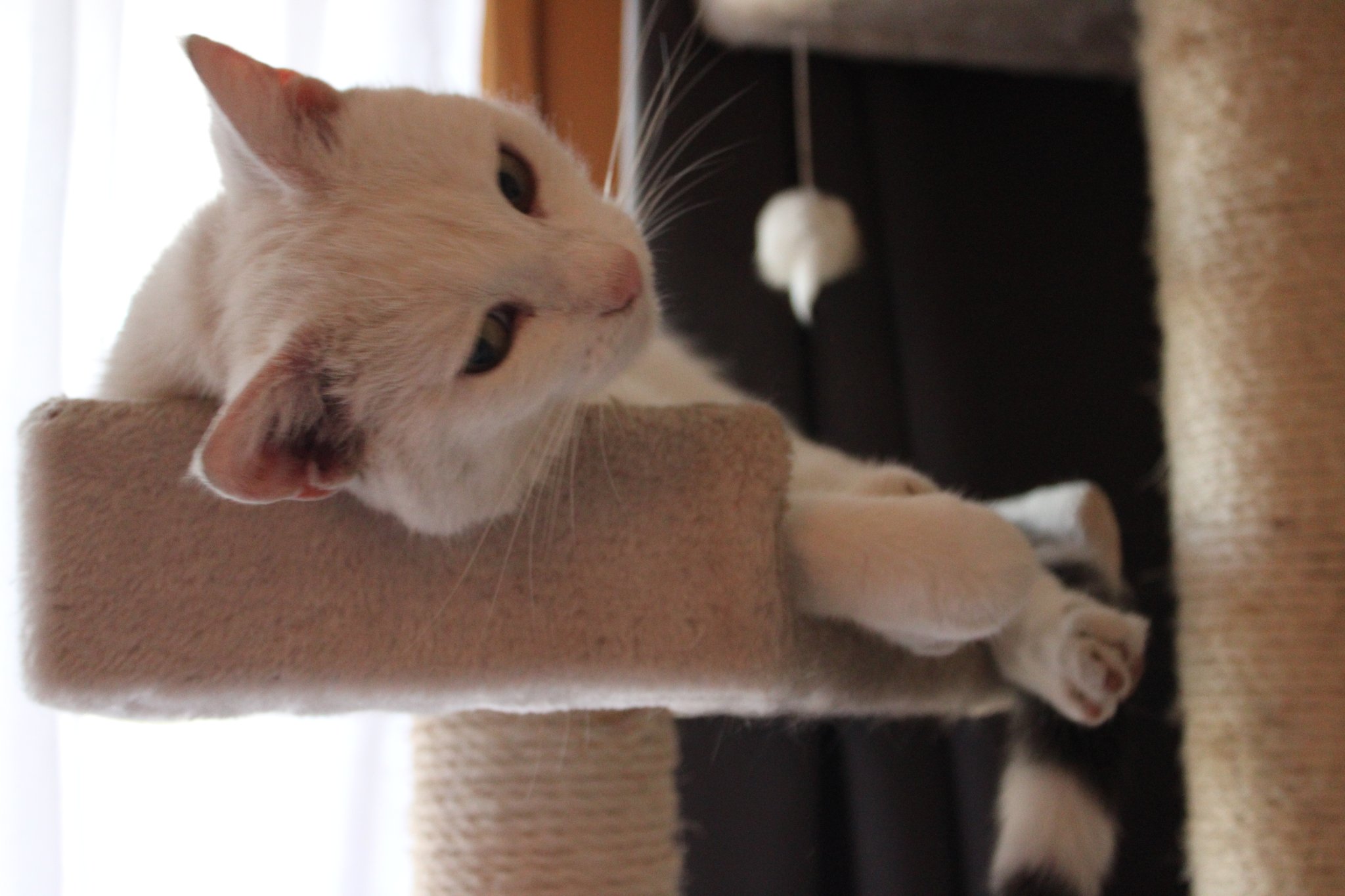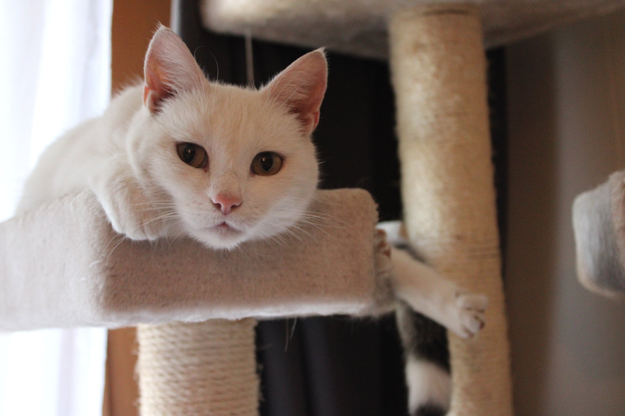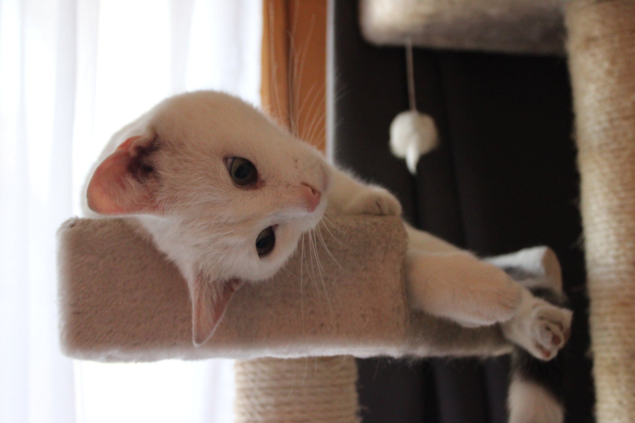 Dort haben sie gleich den gespendeten Katzenbaum erkundet und in Beschlag genommen 🩷