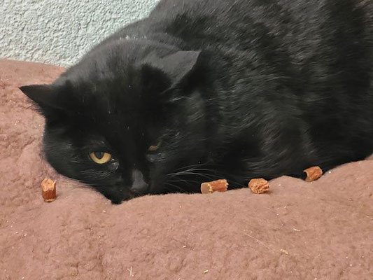Unser Nero (17) ist auch mitgekommen. Er hat IBD und in letzter Zeit leider sehr schnell abgenommen. Wir versuchen es jetzt mit einer Cortisonspritze alle 3 Wochen