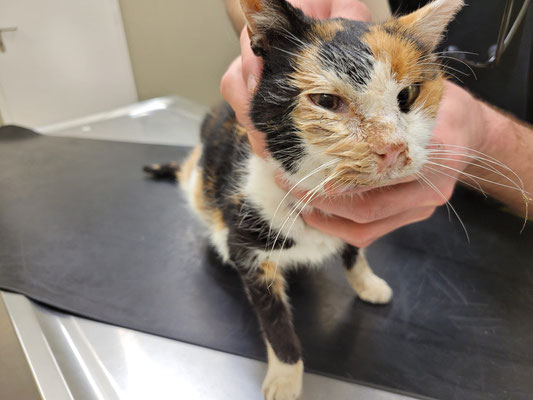 Sein Auge ist entzündet und unsere eigene Pflege (Tropfen und Vitamin A-Salbe) reichten nicht mehr aus