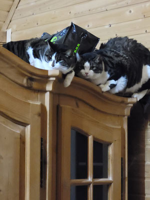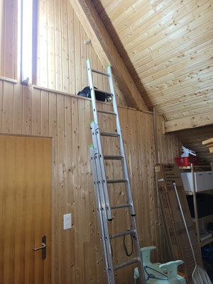 Vermutlich werden wir für Lilly noch eine etwas breitere Katzentreppe machen müssen, da die bestehende evtl. für sie nicht so praktisch ist, weil das eine Hinterbein manchmal wegrutsch. Wir werden ihr eine doppelt so breite mit "Listli" an den Rändern machen, damit sie dann sicher aus und wieder zurück ins Haus kann.