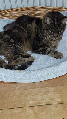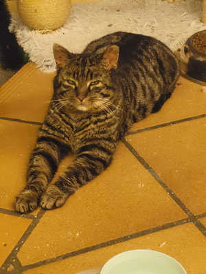 Ist ein Streuner, der wohl schon seit Jahren in Huttwil rumgestreunert ist. Eine Frau hat sich seiner angenommen und wir liessen ihn letztes Jahr kastrieren. Leider hat er sich nicht mit den eigenen Katzen verstanden, darum haben wir ihn am letzten Samstag aufgenommen.