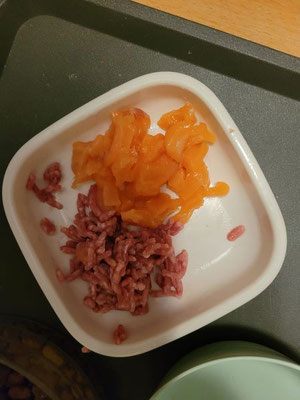 Odecia, die in der FIP-Wartezeit ist, will gerade nichts mehr essen und erbricht. Da denken wir an "Moritz-Zeiten" zurück und ziehen alle Register. Aber weder Poulet, Lachs noch Rindshackfleisch mag sie essen