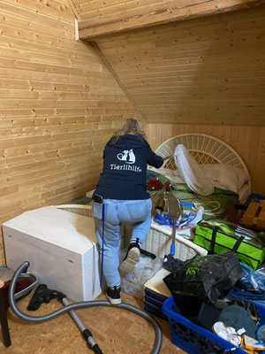 Eine Wohnung wird geräumt und die wilden 4 Katzen mussten noch eingefangen werden.