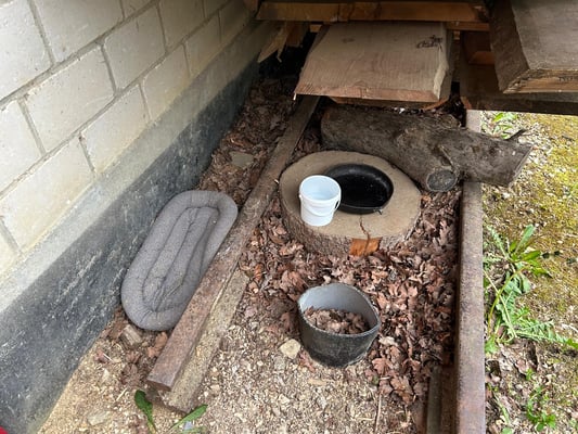 Vor Ort war ein Bettli und eine Bratpfanne mit Futter.